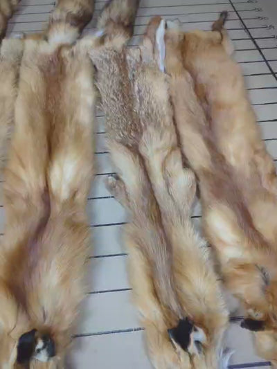 Each pelt is one of a kind, with variations in size, color, and severity of defects. You will receive one individual Eastern Red Fox pelt similar to the example shown.